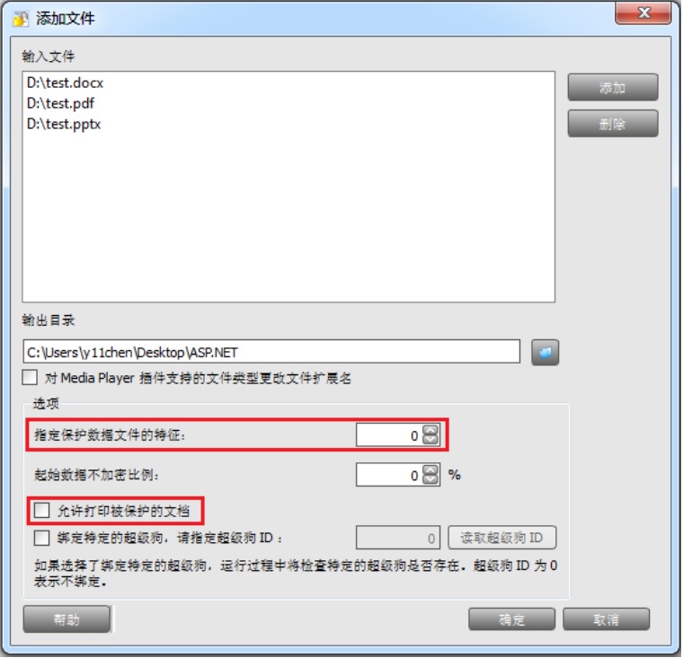 可以用指定的特征來保護您的 Office 文檔和 PDF 文檔,特征的缺省值是 0,被保護的Office 文檔和 PDF 文檔在打開時將在連接的超級狗中搜索為其指定的特征。