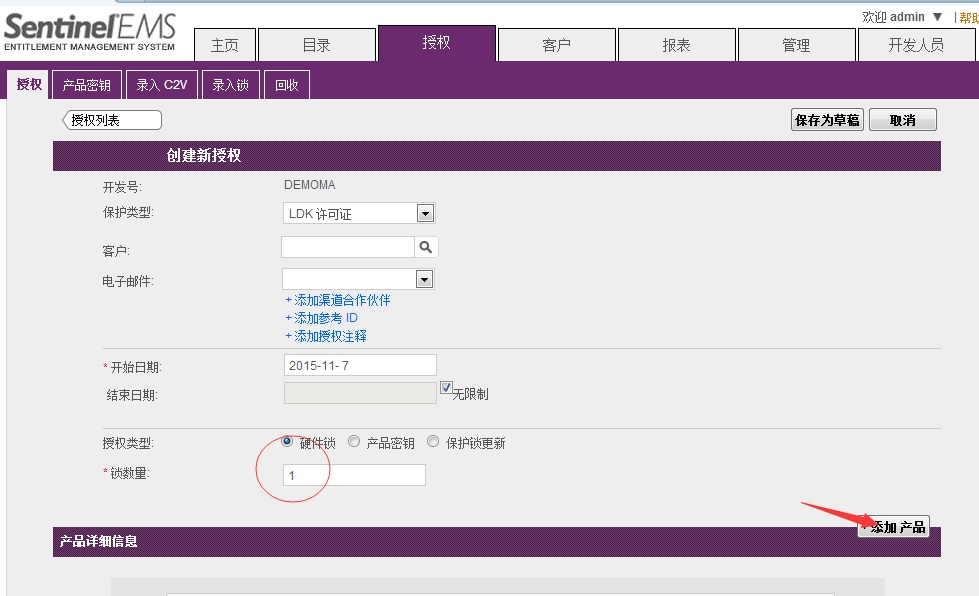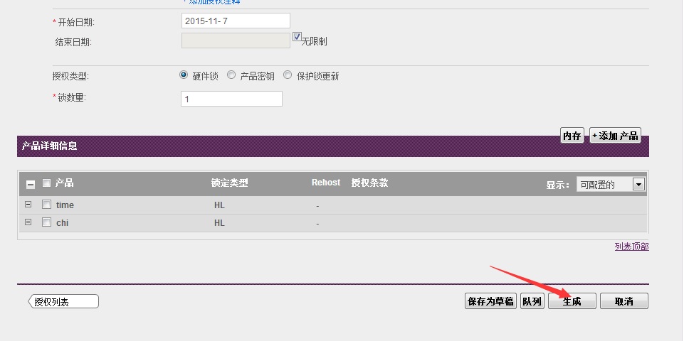 填入要寫鎖的數(shù)量,并通過“添加產(chǎn)品”把之前定義好的產(chǎn)品添加進(jìn)來。