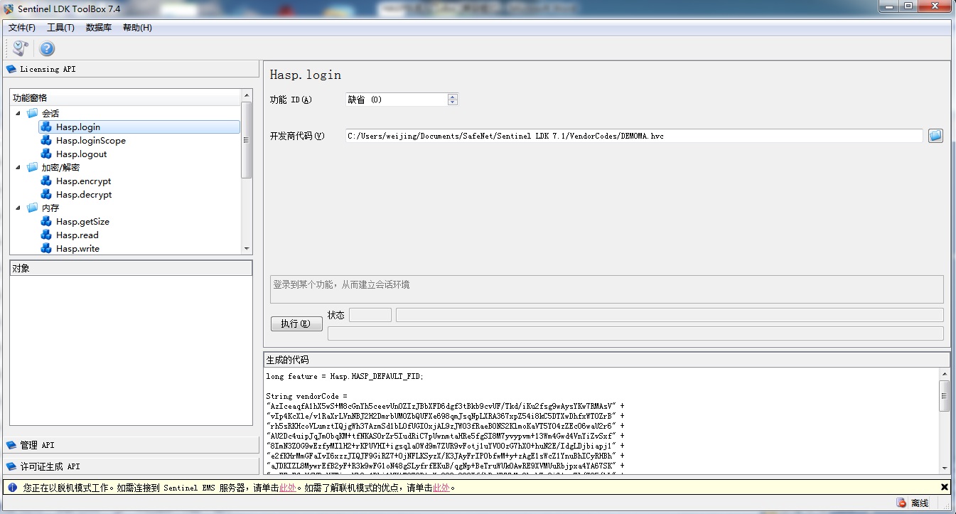 在Sentinel Ldk開發(fā)包安裝目錄C:\Program Files (x86)\ Thales\Sentinel LDK\Samples\Licensing(LDK9.0之前是\Runtime目錄)下有對(duì)應(yīng)的開發(fā)語言的完整示例,這些示例編譯以后,可以直接通過demo號(hào)的加密狗來調(diào)用測(cè)試,示例目前覆蓋主流的開發(fā)語言。如果用正式開發(fā)鎖來調(diào)用這個(gè)demo程序,需要做一些修改工作。