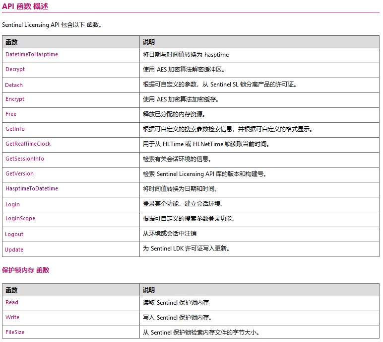 關(guān)于每個(gè)函數(shù)的詳細(xì)說明及返回參數(shù),請(qǐng)參閱安裝目錄C:\Program Files (x86)\Thales\Sentinel LDK\Licensing\C或\ DotNet中的幫助文件。(注:LDK9.0之前的目錄是C:\Program Files (x86)\Thales\Sentinel LDK\Licensing\Runtime\C或\ DotNet)