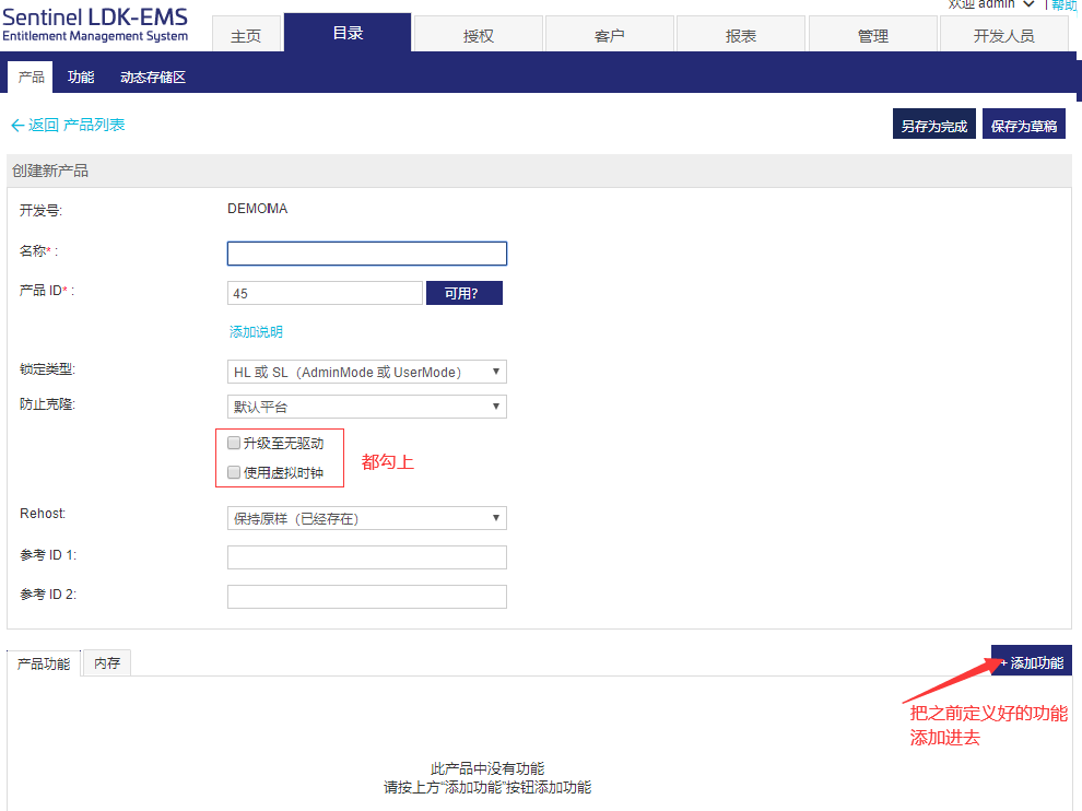 2、定義產品---把這個功能ID與開發商的軟件名稱關聯,包括設置時間、次數等限制;